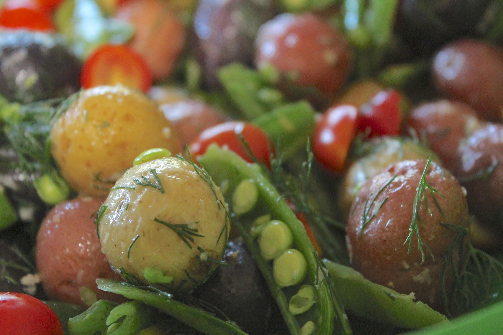I've made it since with larger potatoes cut into small pieces - this time white and blue potatoes. It just hits the spot. It will definitely be a favorite for me this summer. Imagine the extra color from heirloom tomatoes!